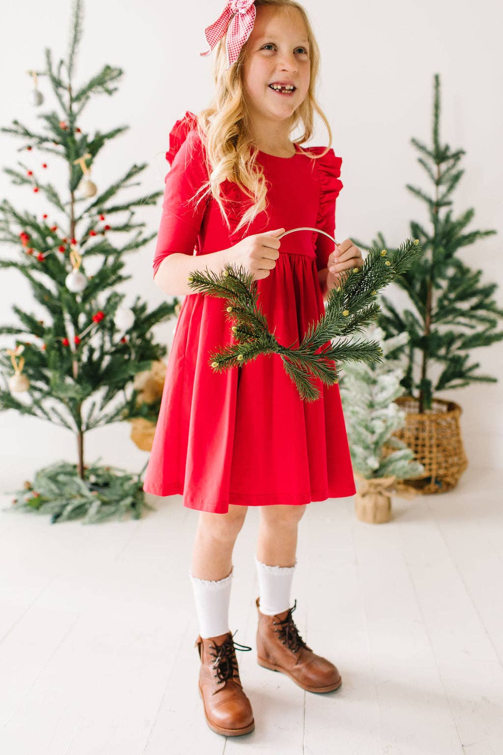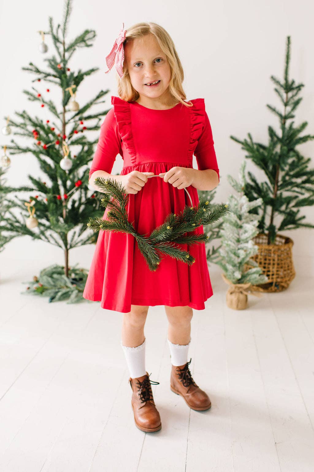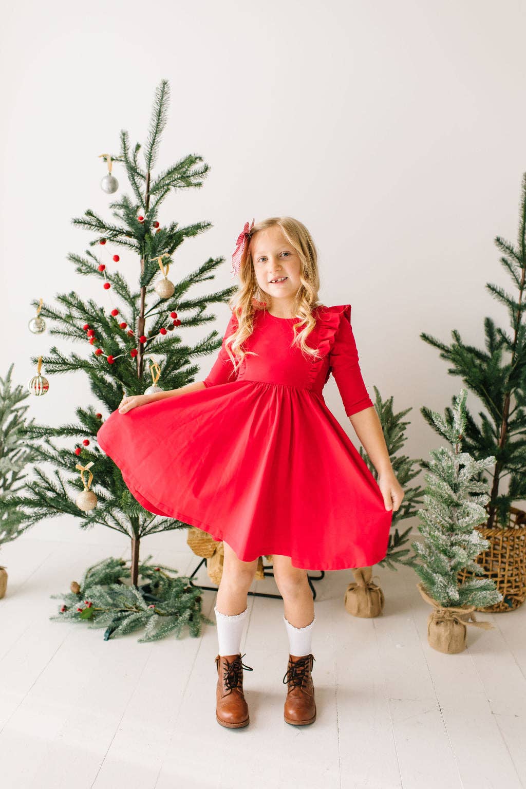 A classic ballet inspired twirl dress in our signature extra soft and stretchy fabric with side seam pockets, double lined bodice, scoop back, 3/4 sleeves and a full circle skirt for maximum twirls!