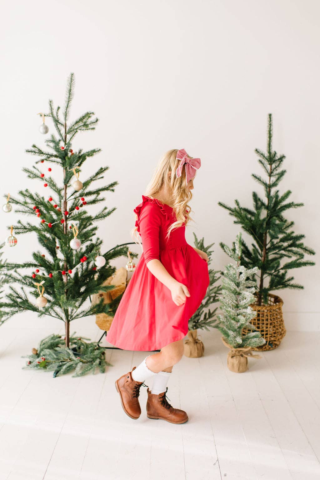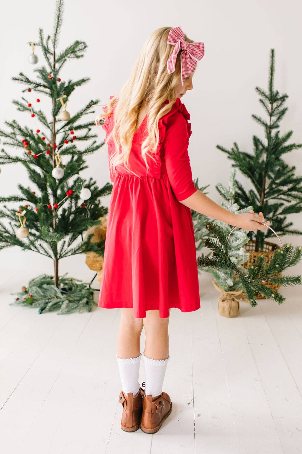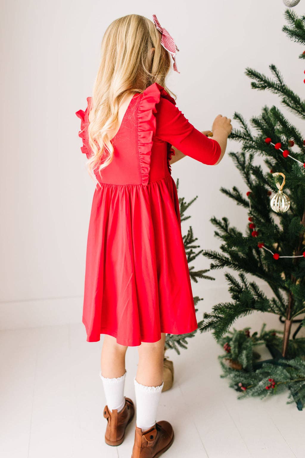 A classic ballet inspired twirl dress in our signature extra soft and stretchy fabric with side seam pockets, double lined bodice, scoop back, 3/4 sleeves and a full circle skirt for maximum twirls!
