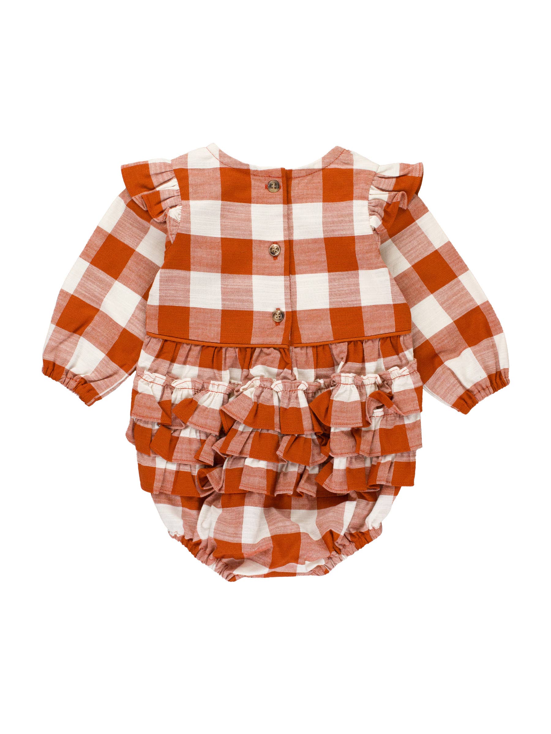 Sweet layers of ruffles take this romper to the next level of cuteness! Featuring snaps at the legs for easy changing.