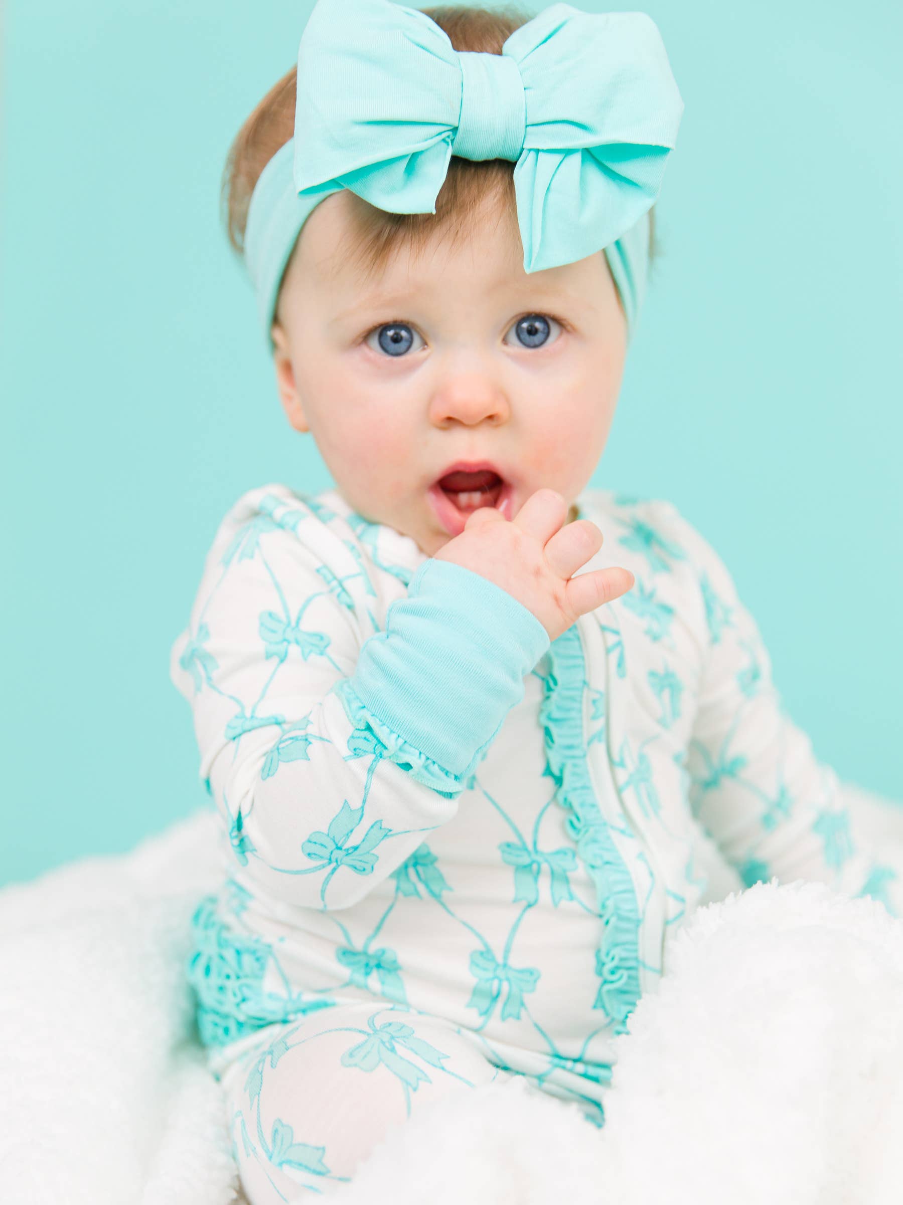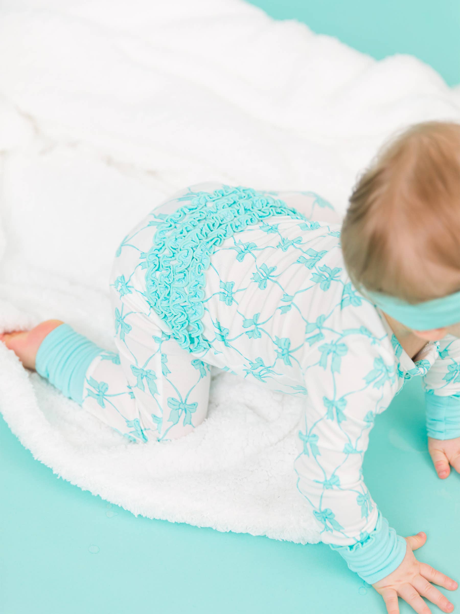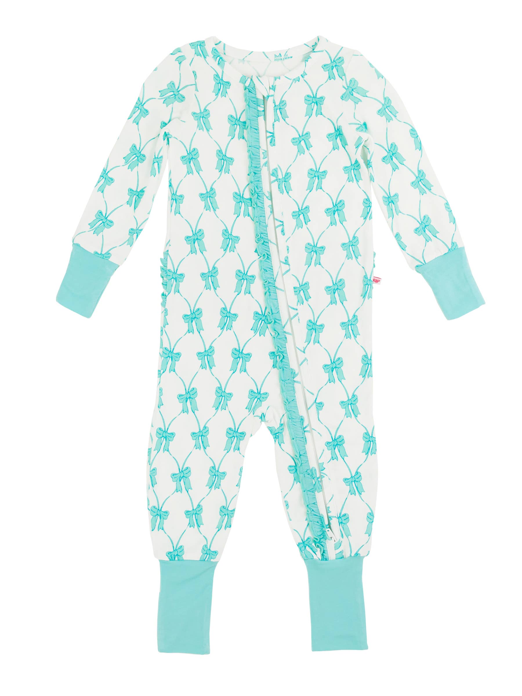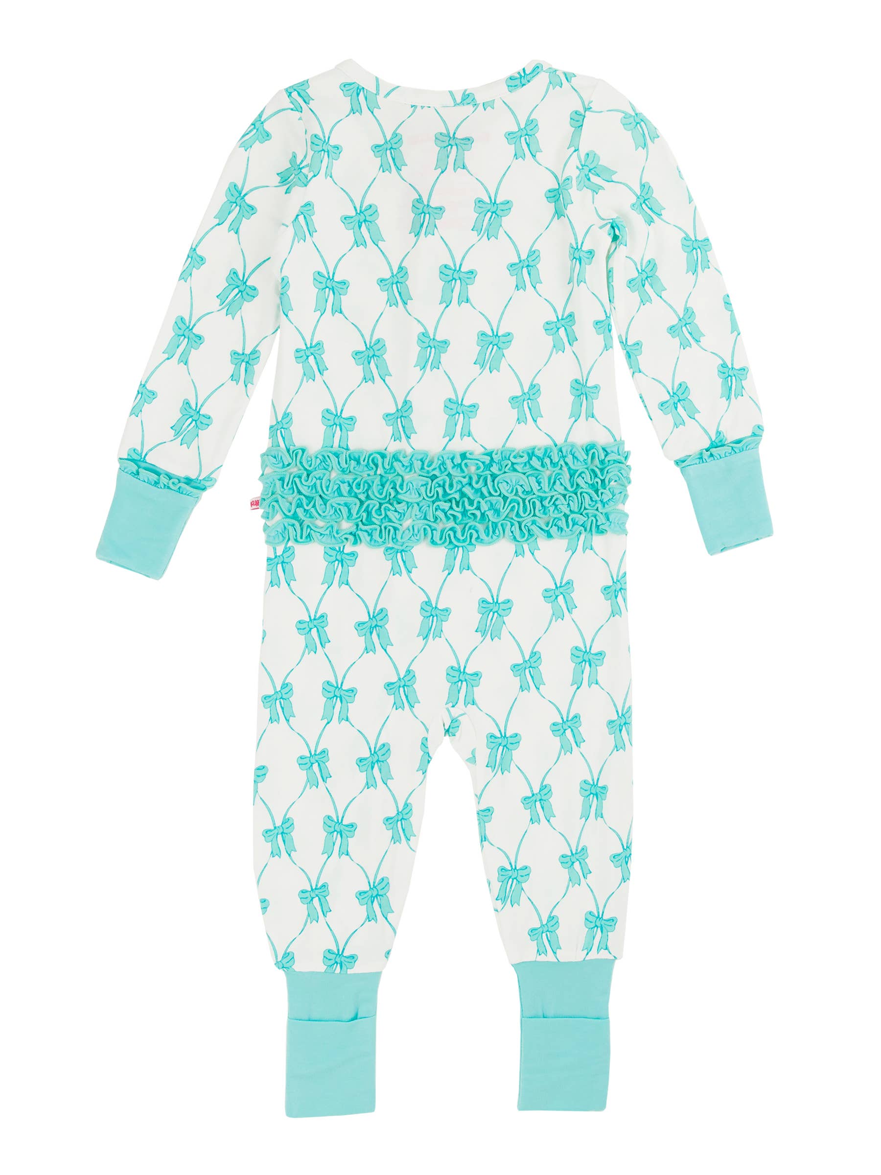 Teal Fairytale Bows Bamboo Viscose Convertible Ruffle One Piece Pajama