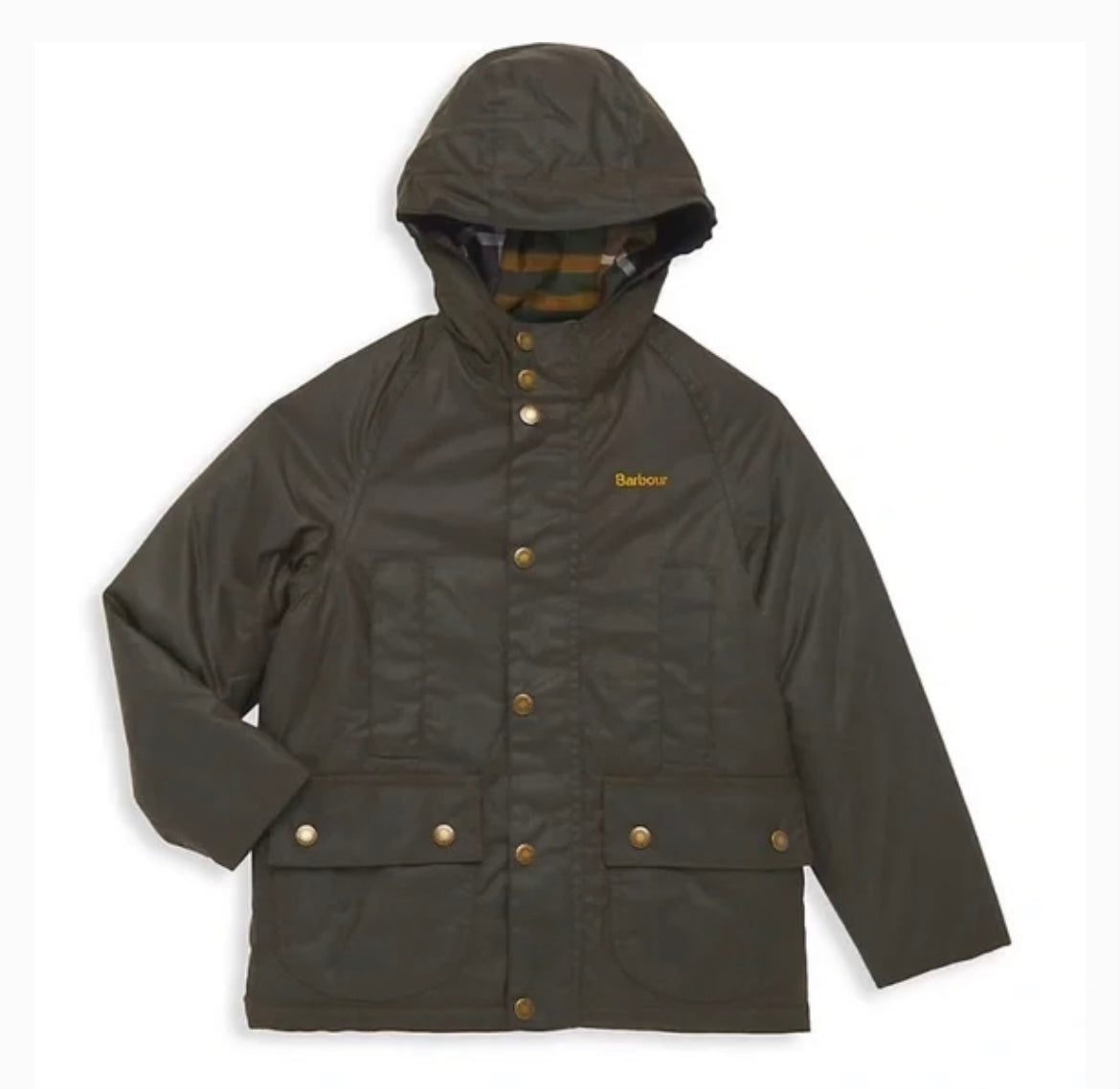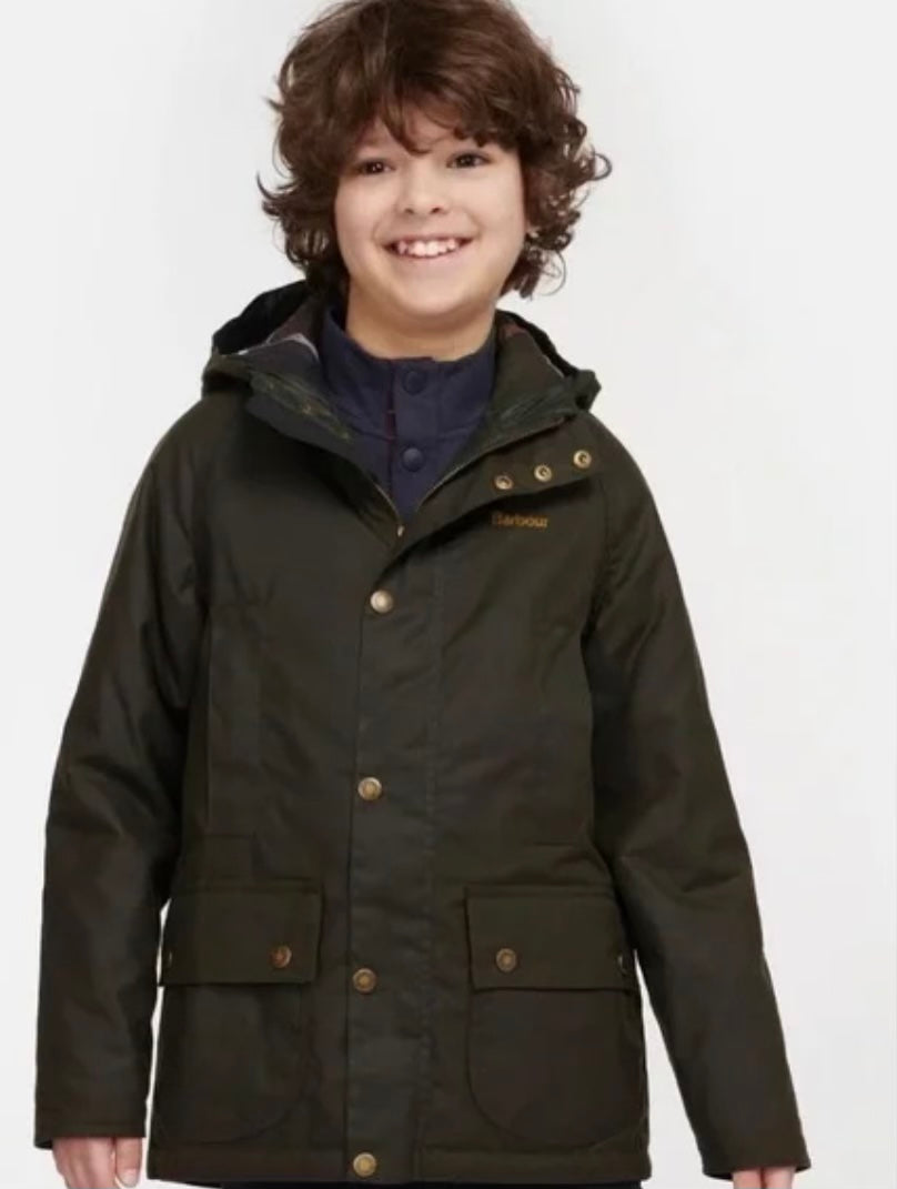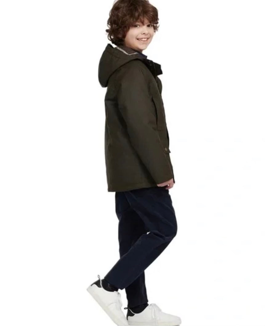 Barbour Boys Olive Hooded Waxed Beaufort Jacket