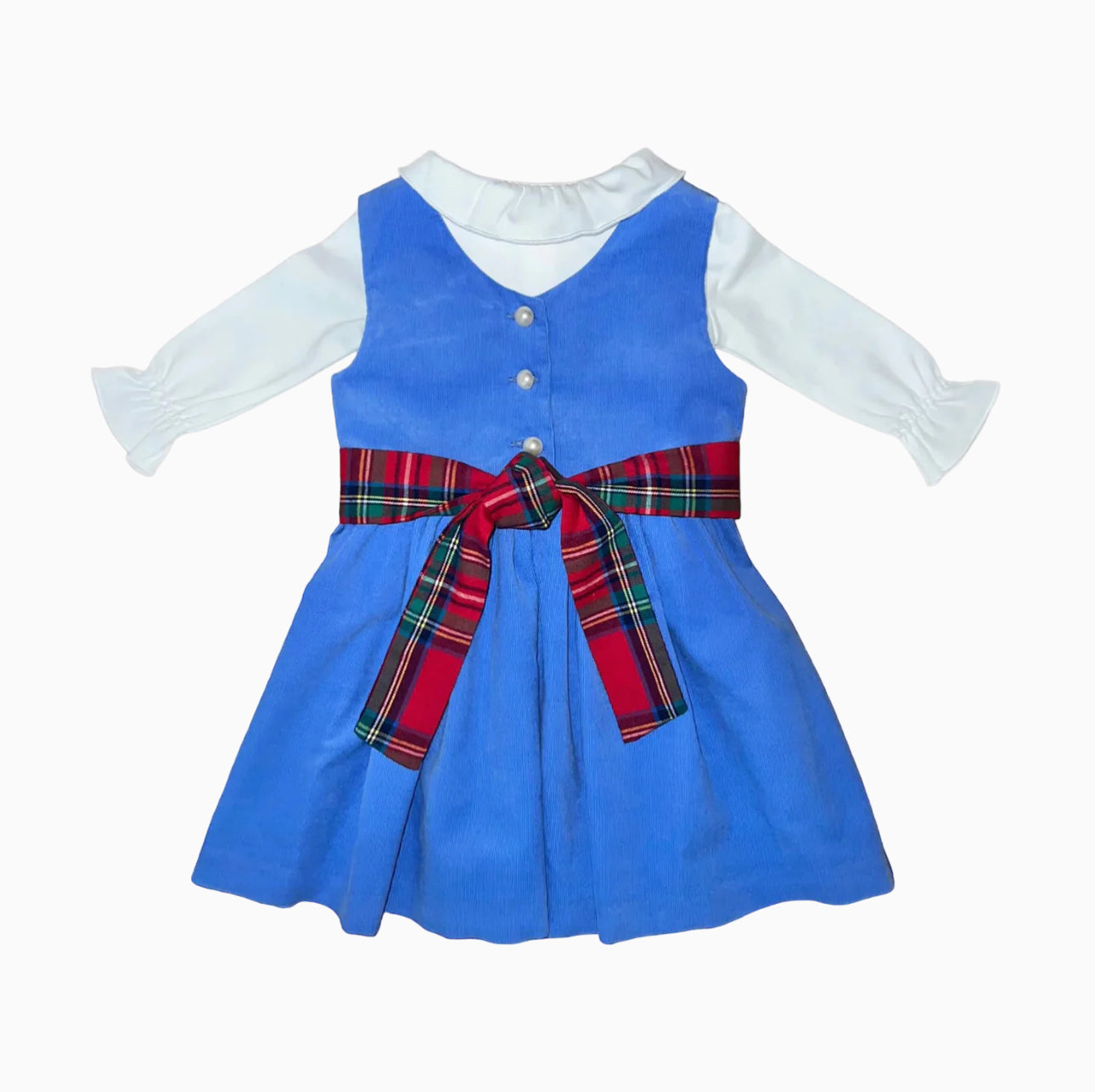Our Boone Hall Blue Corduroy Anna Twirl Dress by Brown Bowen & Co does exactly what it says it does. Twirl! This gorgeous dress comes with a Christmas plaid sash, but can be replaced with any other sash you choose for a different look or occasion! See our matching boys Boone Hall Longall or Boone Hall Blue Palmetto Pants for a matching brother/sister set.