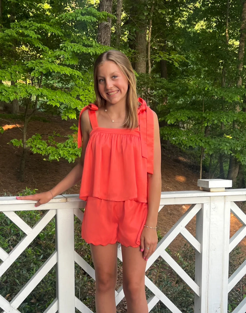 The perfect counterpart for our Brown Bowen Carolina Coral or Gold Magnolia Tops! Can go with most any neutral colored top though! Elastic waist makes for a great fit for most body types and scalloped hem ads a fashionable flare to an otherwise basic wardrobe item! Get the matching Coral Top here!