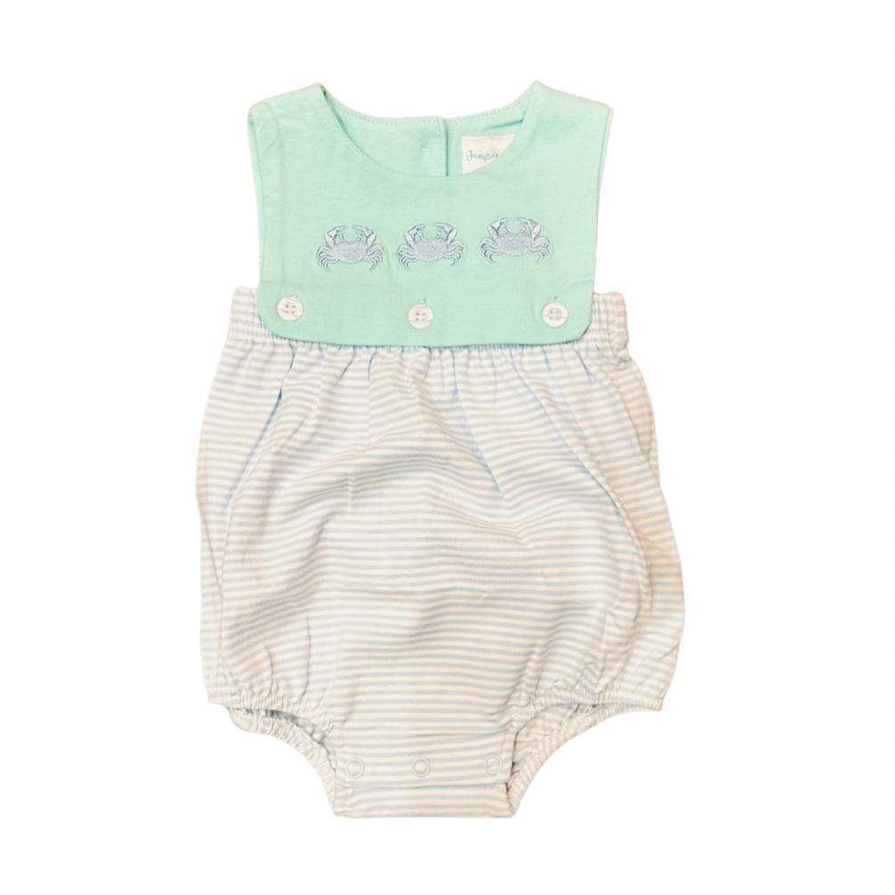 Precious crab applique bubble from new knit line, Jumping Jolly! See matching sister bubble for a cute brother sister set!