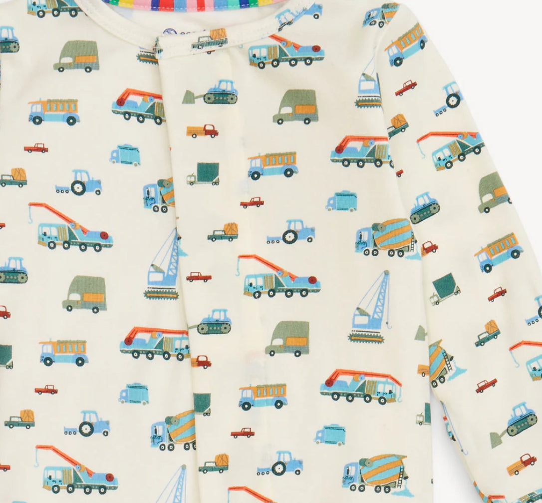 If your little guy loves trucks and tractors then this modal convertible pajama is for him! Easily converts into a footie!