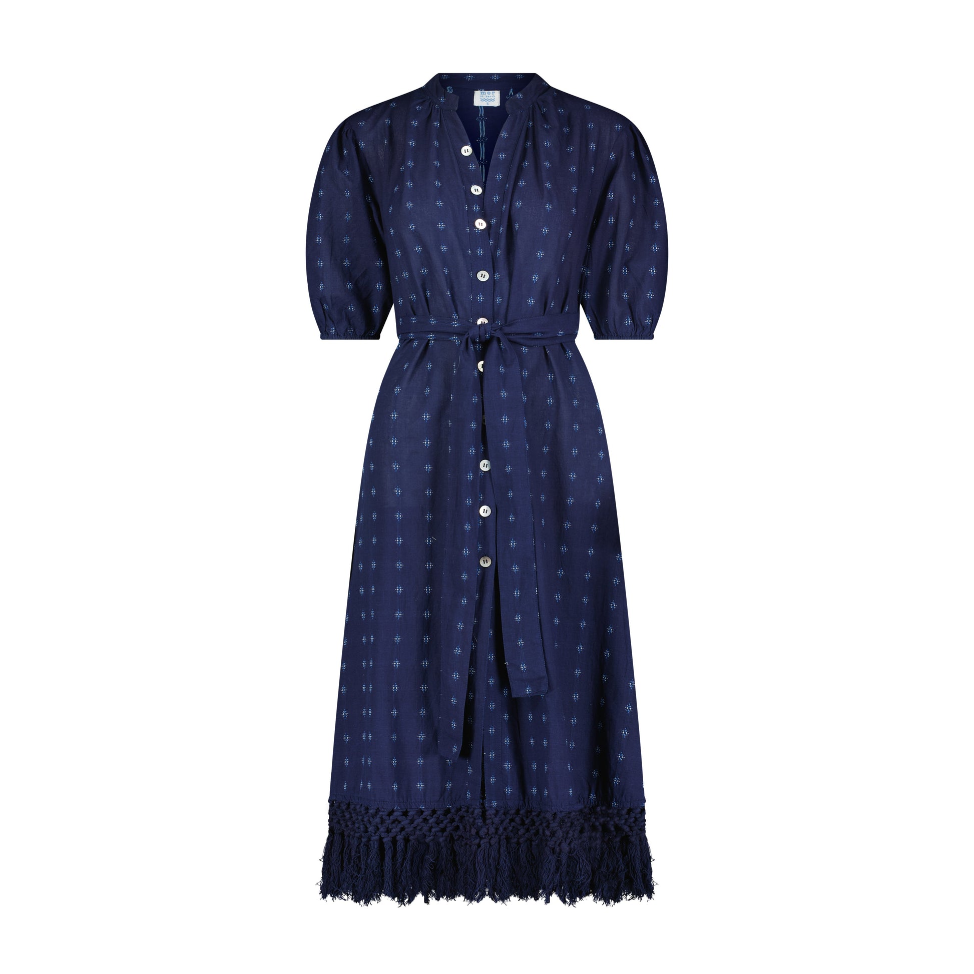 Estelle Women's Fringed Shirtdress Navy Turquoise Swiss Dot