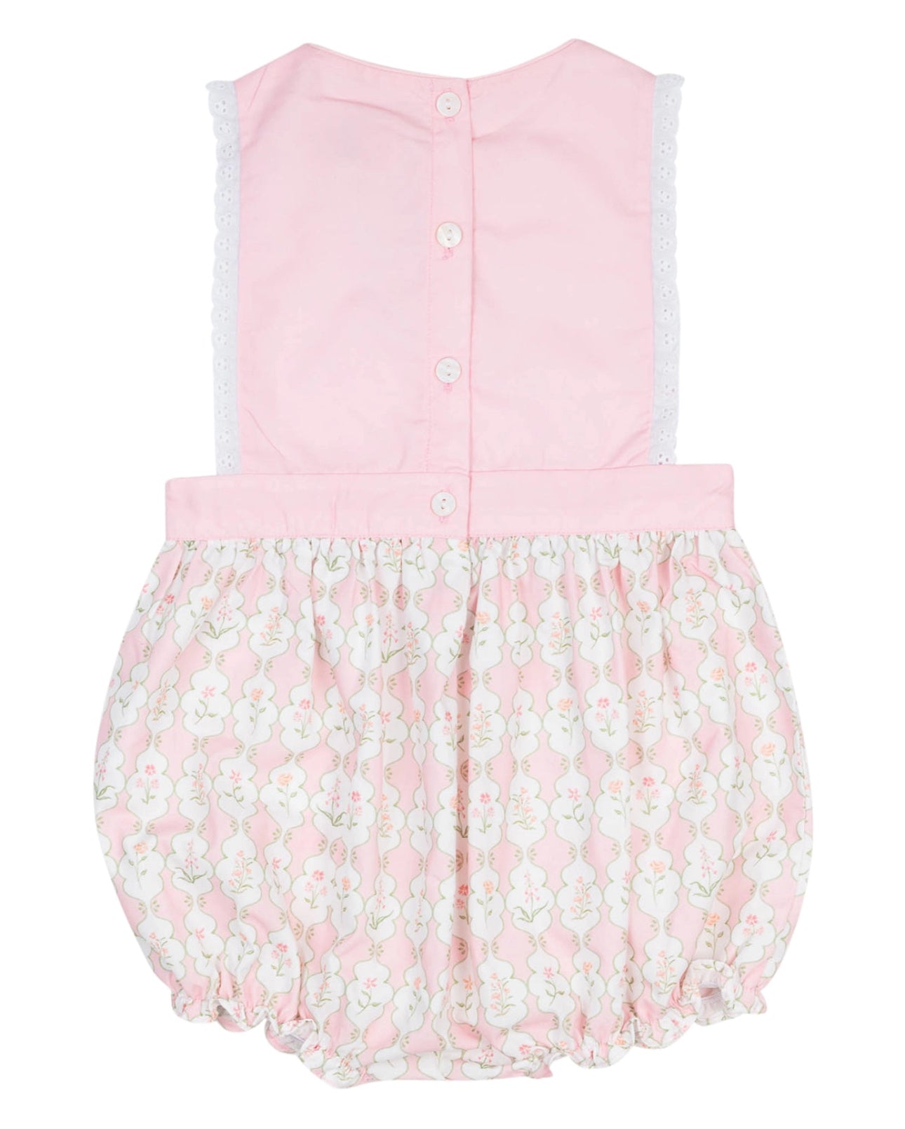 A delightful, whimsical addition to you sweet baby girl's wardrobe! Crafted in a. soft blush hue with charming floral prints, this bubble romper features delicate ruffles and a comfortable fit, perfect for playdates and special occasions. Add a monogram for a sweet personalized outfit!
