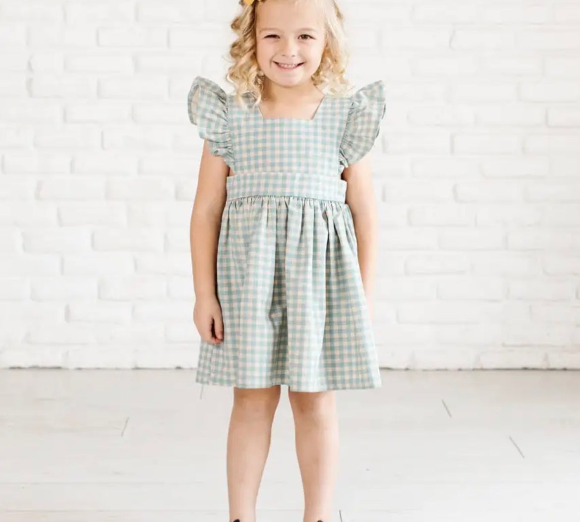 Beautiful pinafore in classic gingham! Wear it alone when it's hot, and pair it with a sweet peter pan top under it when it cools down outside.