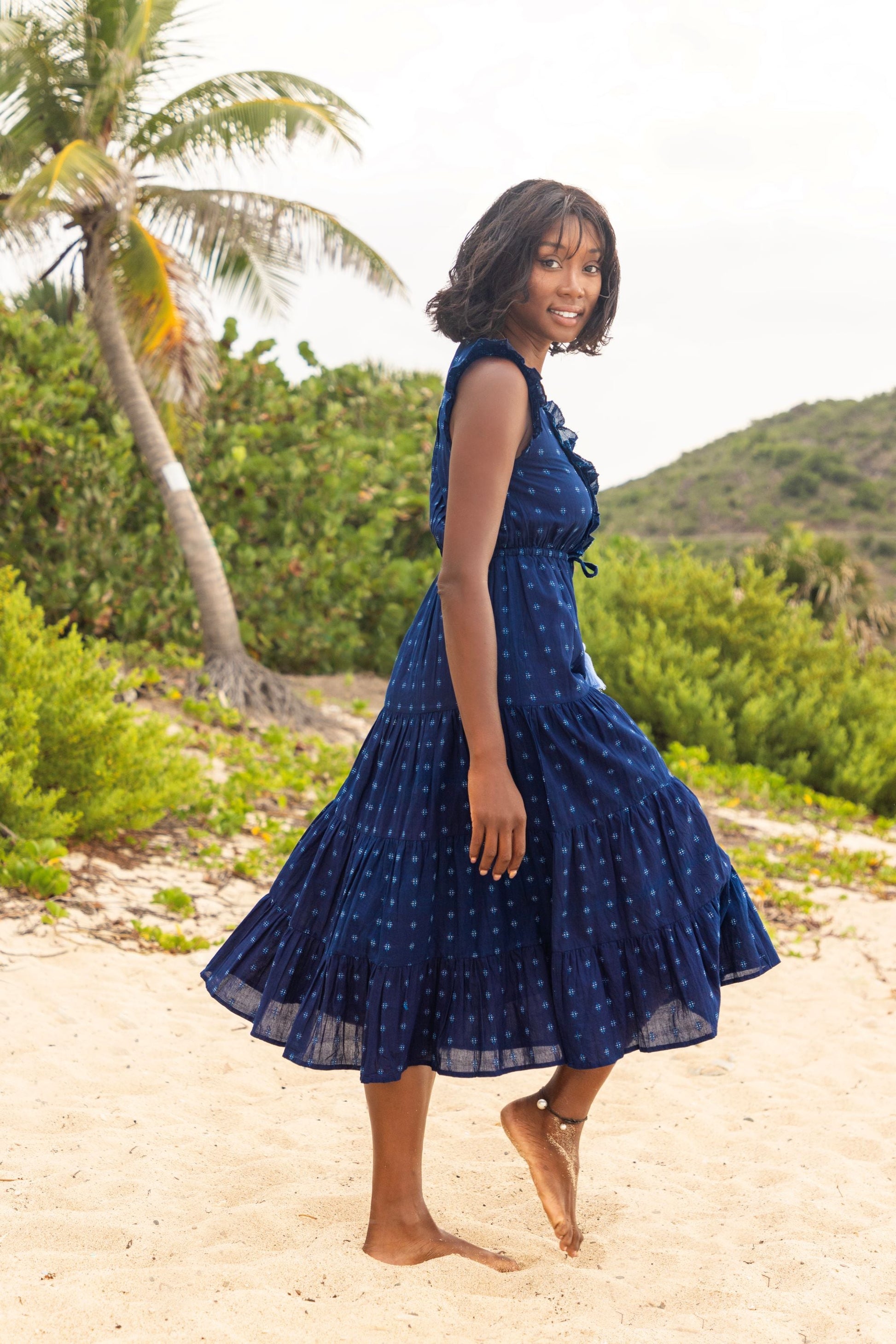 Giselle Women's Maxi Dress Navy Turquoise Swiss Dot