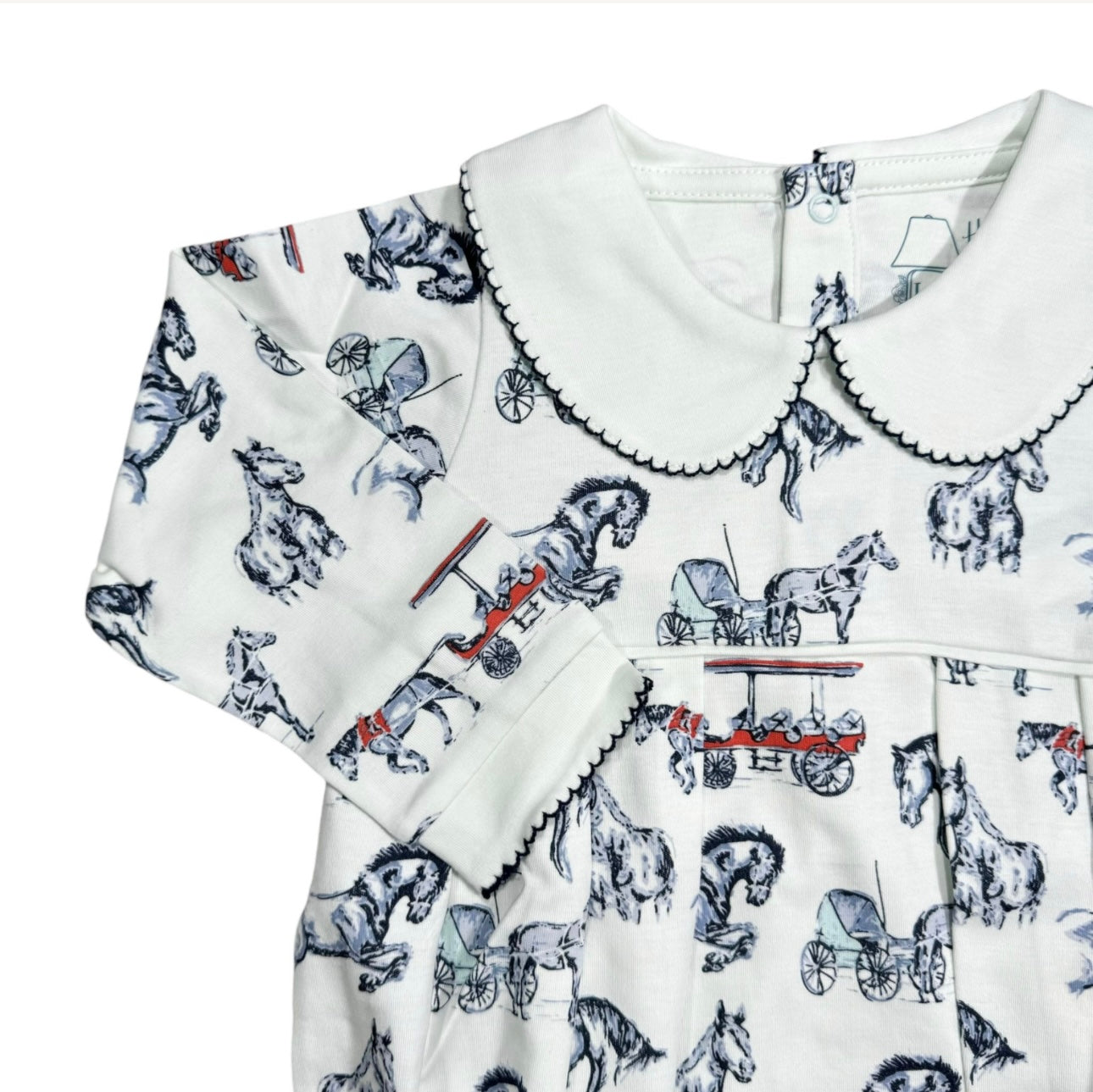 Our newest brand has the most amazing designs. The horse sketch bubble is exquisite, and would look beautiful on baby girls or boys. See the matching sister dress to match!