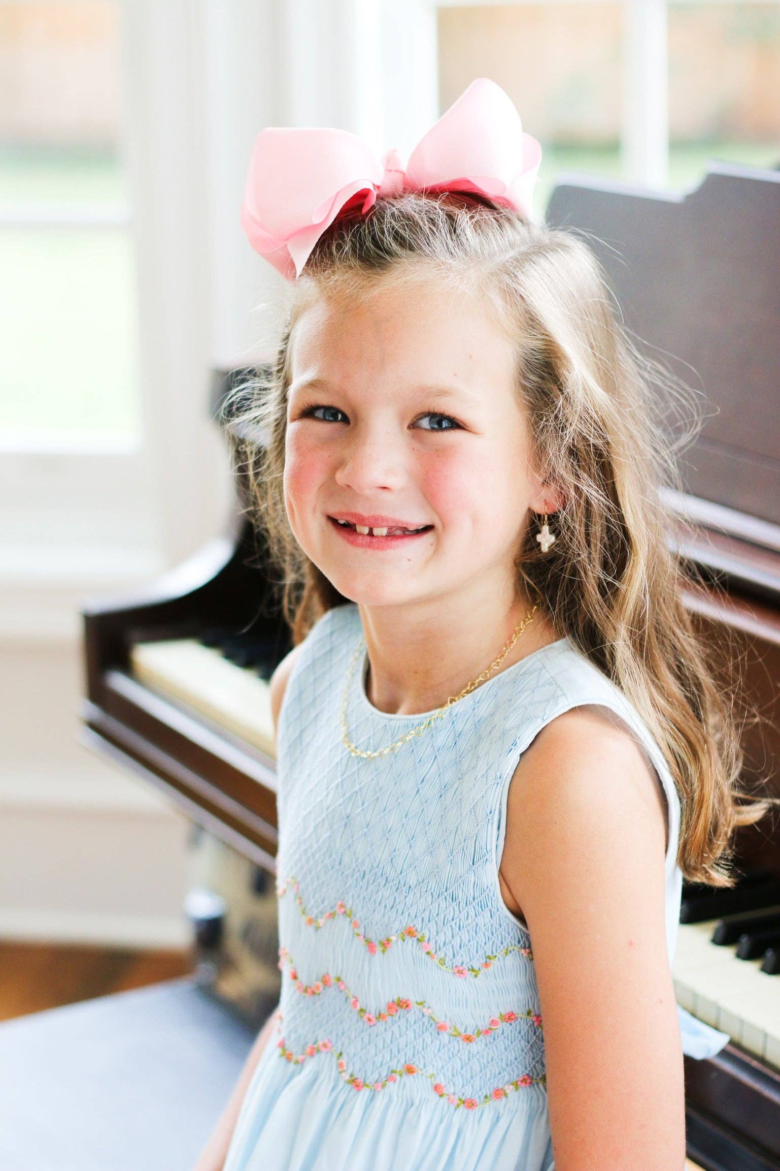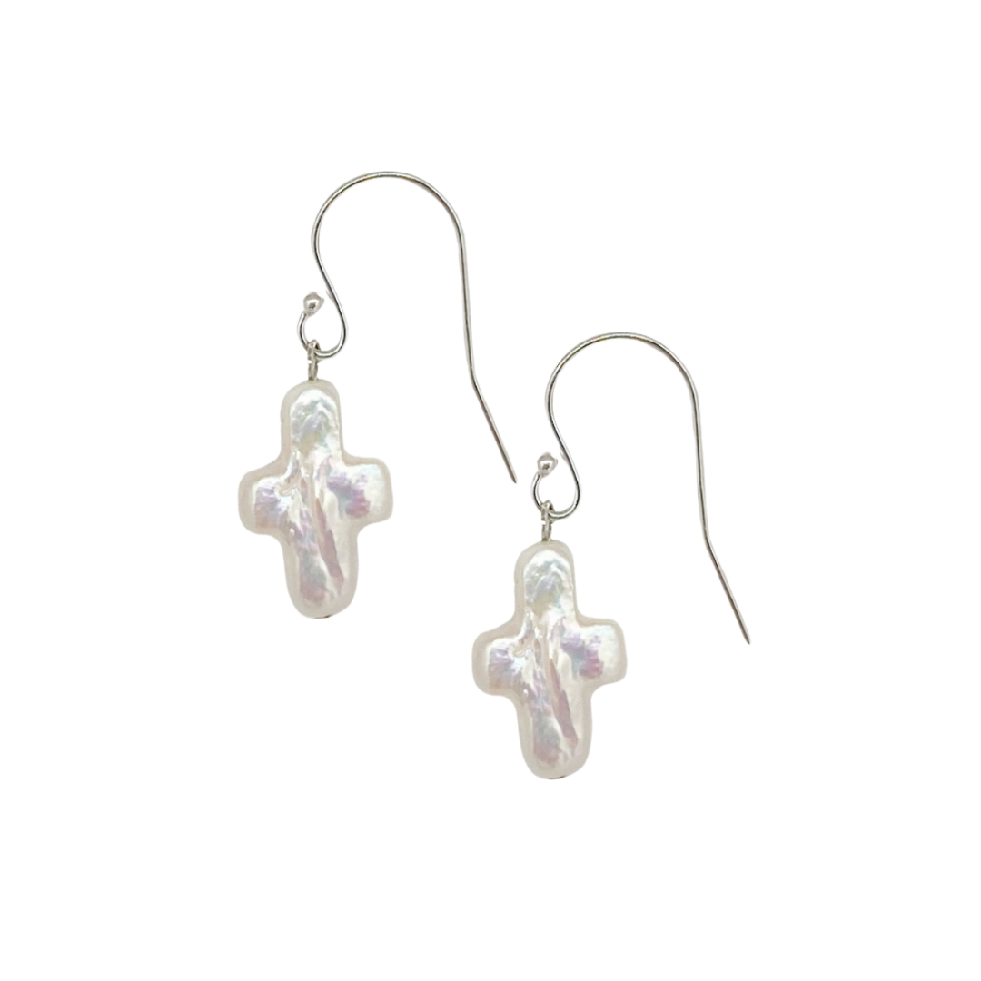 White freshwater pearl cross on earring hooks. 14K gold filled.