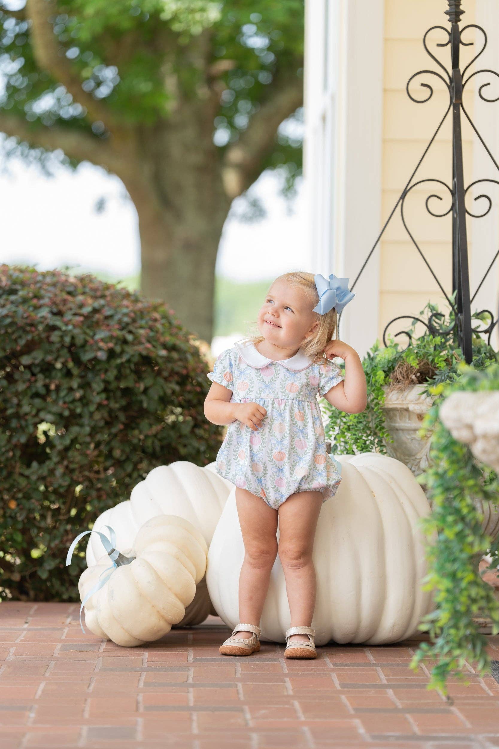 Whoever said fall fashion can’t be fun? Mary Mills’ Pumpkin Block Bubble is here to show your little girl how to dress for the season in style! Featuring a variety of pumpkins, bows, and pastel autumn colors, plus a cute white collar, this bubble will keep her looking and feeling as cool as a pumpkin (patch).