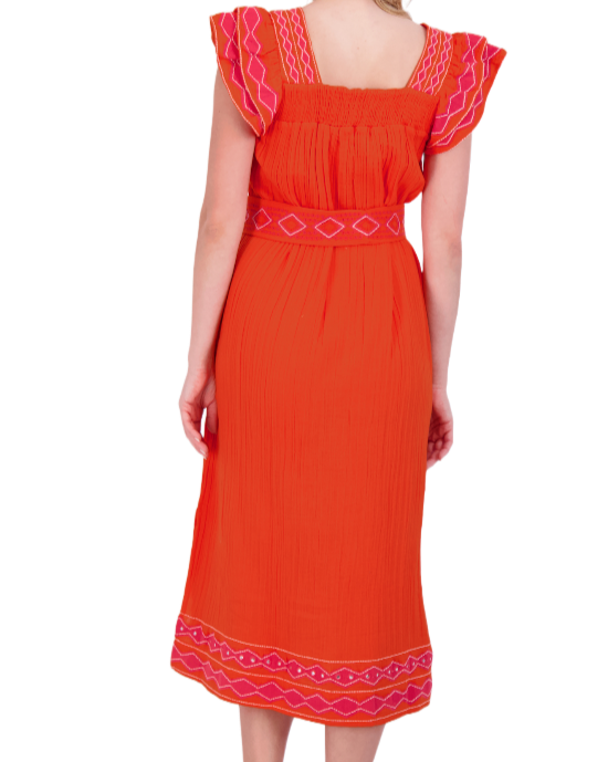 Part of our Mommy & Me Collection! Live on holiday in our effortless Sandrine tassels dress now in maxi length with its relaxed style and gorgeous embroidery detailing. Belt it up for a more dressier look or wear it loose as a chic, beach cover-up. Dress features a square neckline and double layer sleeves.