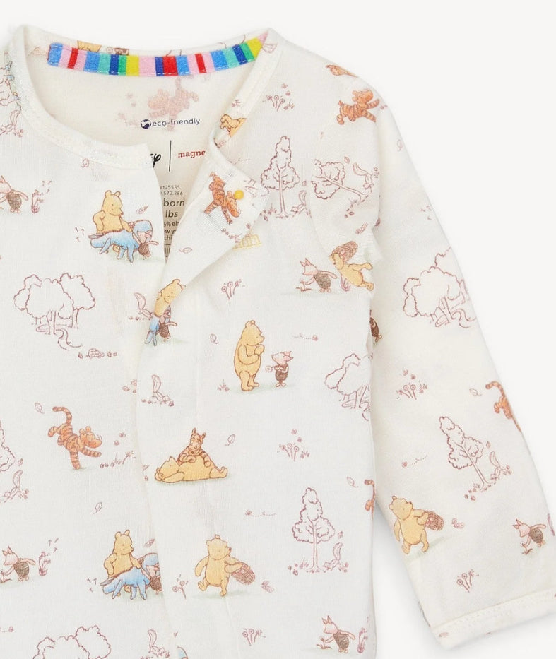 Magnetic Me makes the softest, easiest to open and close pajamas for babies. Magnetics make changing time a breeze! Any Winnie the Pooh lover will be thrilled with this unisex footie pajama set!