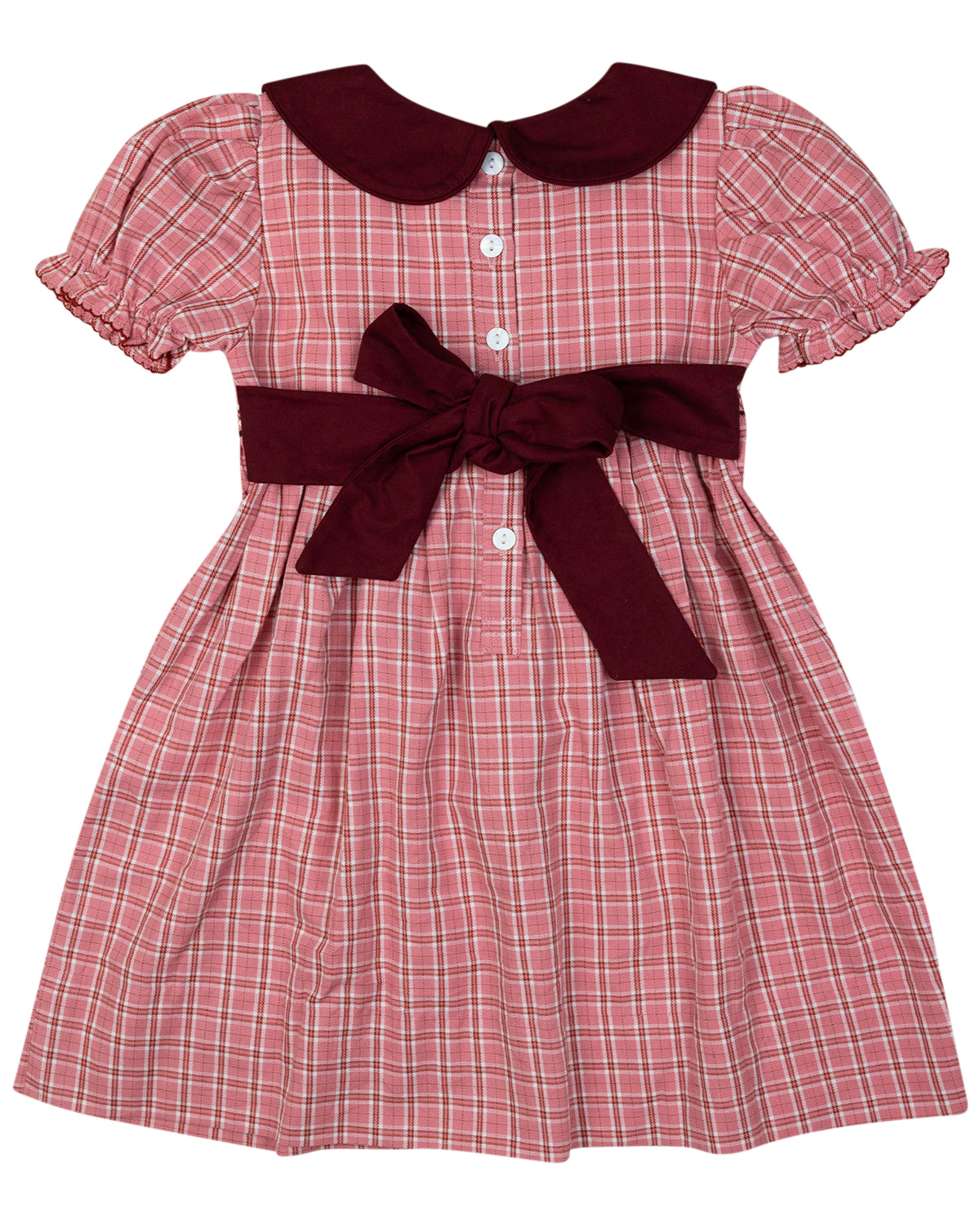 Dress your little one in sophistication with our Pink and Maroon Tartan Dress. This beautifully designed piece features a soft pink tartan pattern, puffed sleeves, and a contrasting maroon collar for a refined yet playful look. The statement ribbon tie at the back adds an extra touch of elegance, making it perfect for holiday gatherings, family portraits, and celebrations. A stunning choice for your little fashionista!