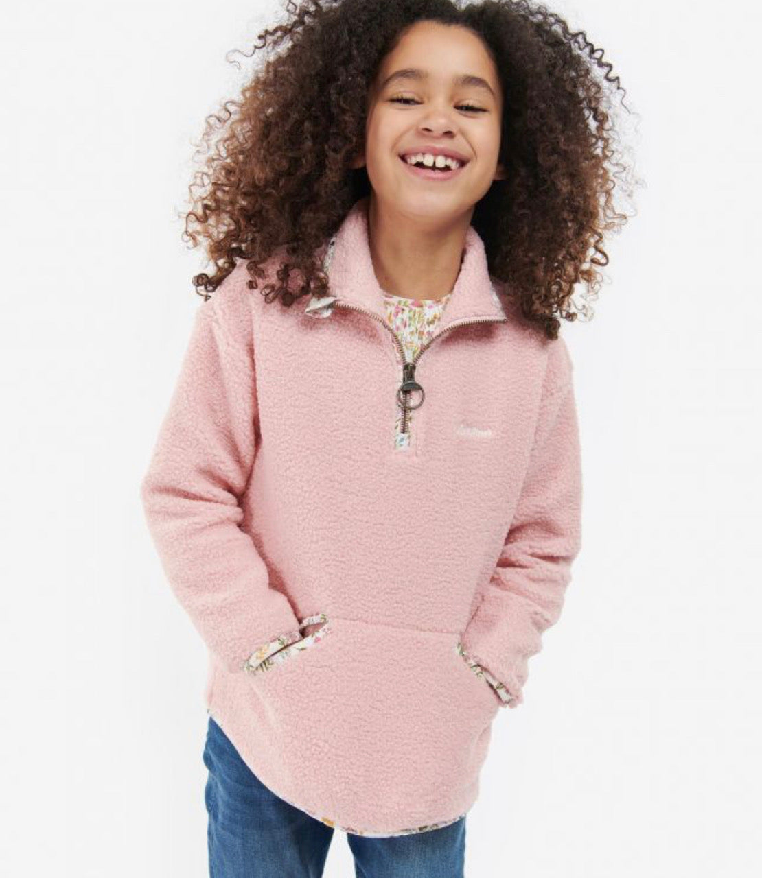 The Petal Pink Melby Fleece Jacket by Barbour is a perfect layer for a chilly day, and the floral binding makes it extra special! Use as a liner worn under our Barbour Girls Summer Liddesdale Jacket when its a little colder.