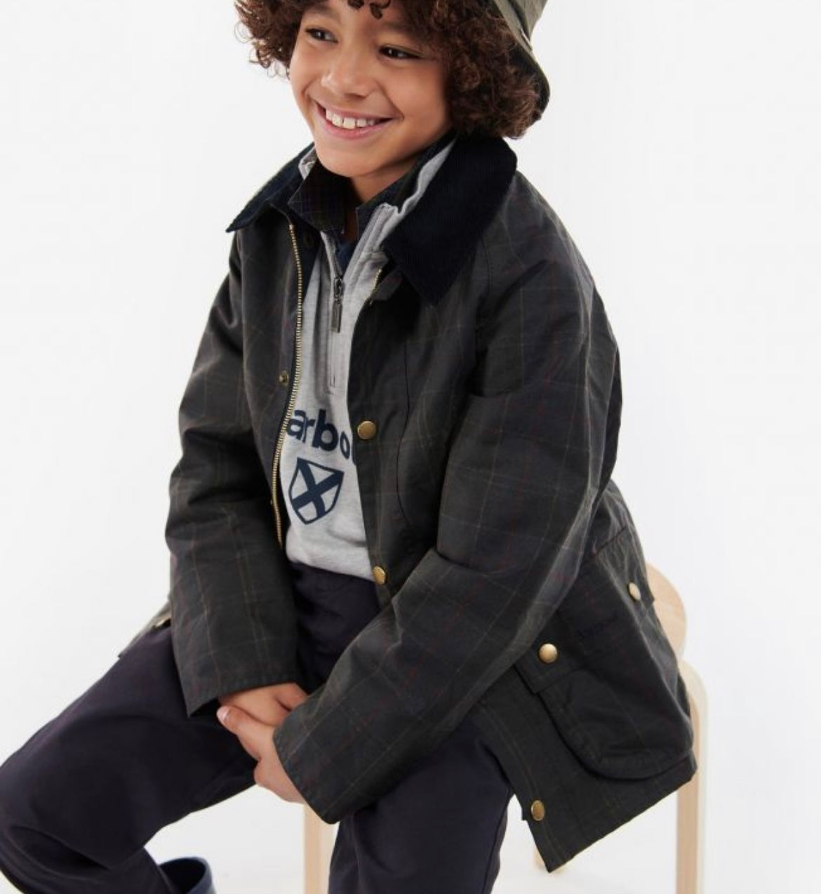 Styled to be the mini version of the men's Waxed Bedale Jacket, it's an instant classic. The tartan pattern is muted but gives this classic just the right amount of style!