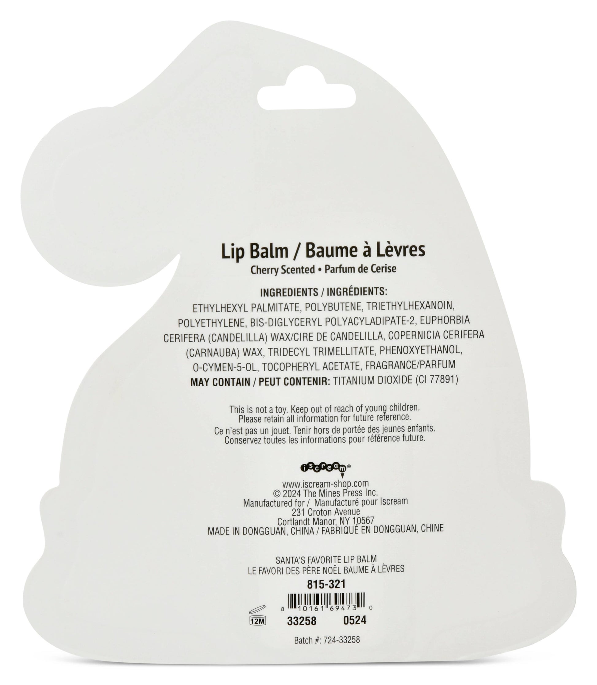 Santa's Favorite lip balm from Iscream. Glitter lid. One large (0.56 oz) sized lip balm perfect for holiday stocking stuffer.