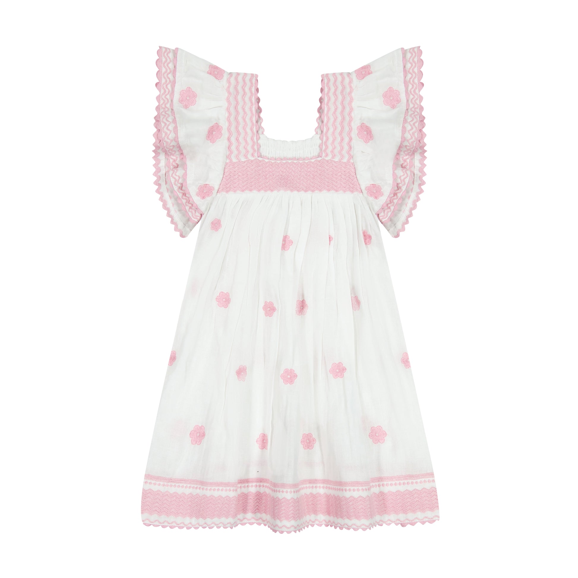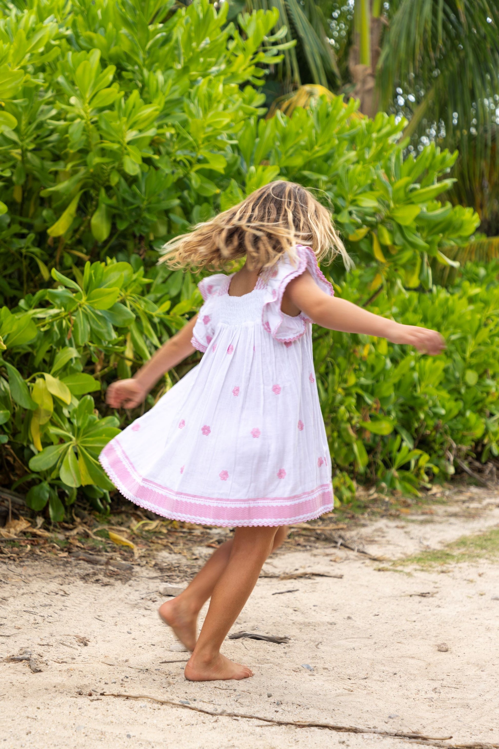 This Serena Girl's Tassel Dress is crafted from soft cotton gauze and features whimsical embroidery, a double flutter sleeve, a twirly skirt, and tassel and pom pom detailing. Perfect for any special occasion, this dress is sure to make your little one feel like the princess she is.
