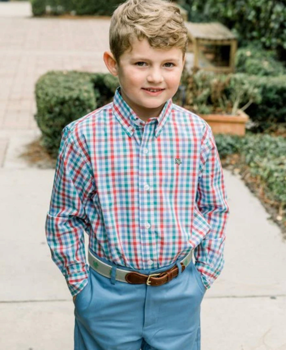 Your little gentleman will look adorable in the Willow Roscoe Button Down shirt, especially mid paired with the matching girls Willow Dress!